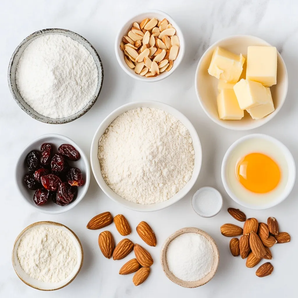 The main flour in this recipe is all-purpose flour. It gives the cookies a nice structure. Almond flour adds a rich, nutty flavor and helps with texture. Baking powder makes the cookies rise, while salt enhances their taste. Using unsalted butter is key. It lets you control the saltiness better. Granulated sugar creates sweetness and a lovely texture. A single large egg binds everything. Pure almond extract adds a fragrant note that pairs well with cherries. Dried cherries offer a tart burst of flavor, and slivered almonds give a nice crunch.