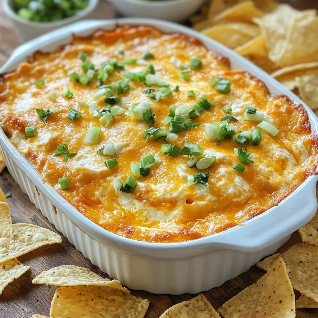 Serve the dip hot in a baking dish. Arrange tortilla chips around it for a fun look. For a personal touch, scoop the dip into small bowls for each guest. Top each bowl with extra chopped green onions. This adds color and a fresh taste. A sprinkle of parsley can also make it pop!