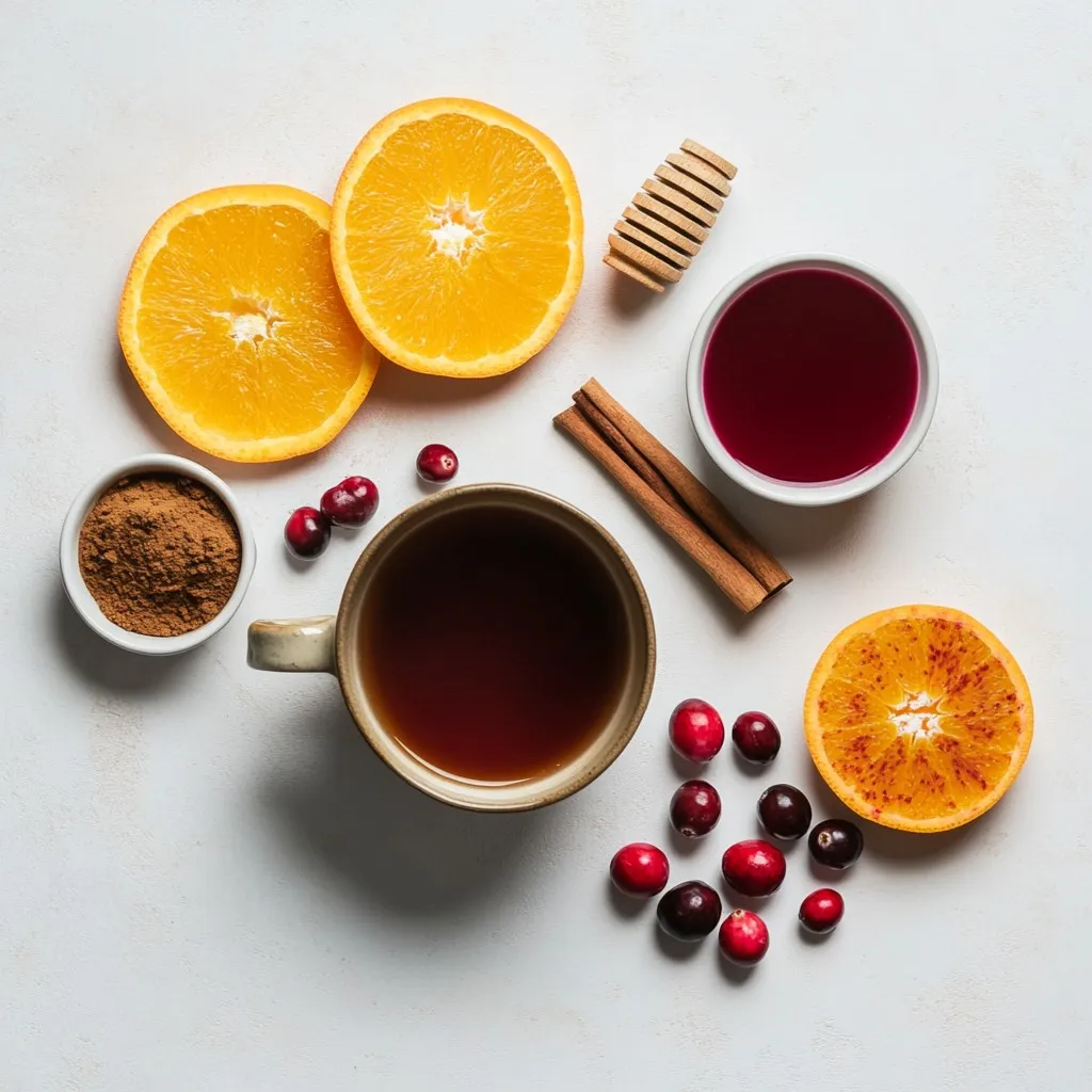 A warm and comforting mocktail with apple cider, cranberry juice, and spices, perfect for chilly days.
