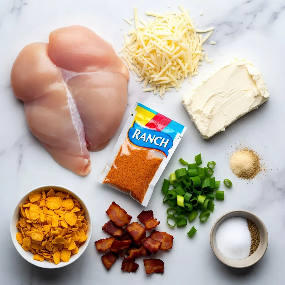 These ingredients create a delightful mix of flavors and textures. The chicken tenderloins serve as the base, while the cheeses bring creaminess. Ranch seasoning adds a zesty kick. Green onions and bacon bits provide freshness and richness. The cornflake coating gives a satisfying crunch that makes every bite enjoyable.