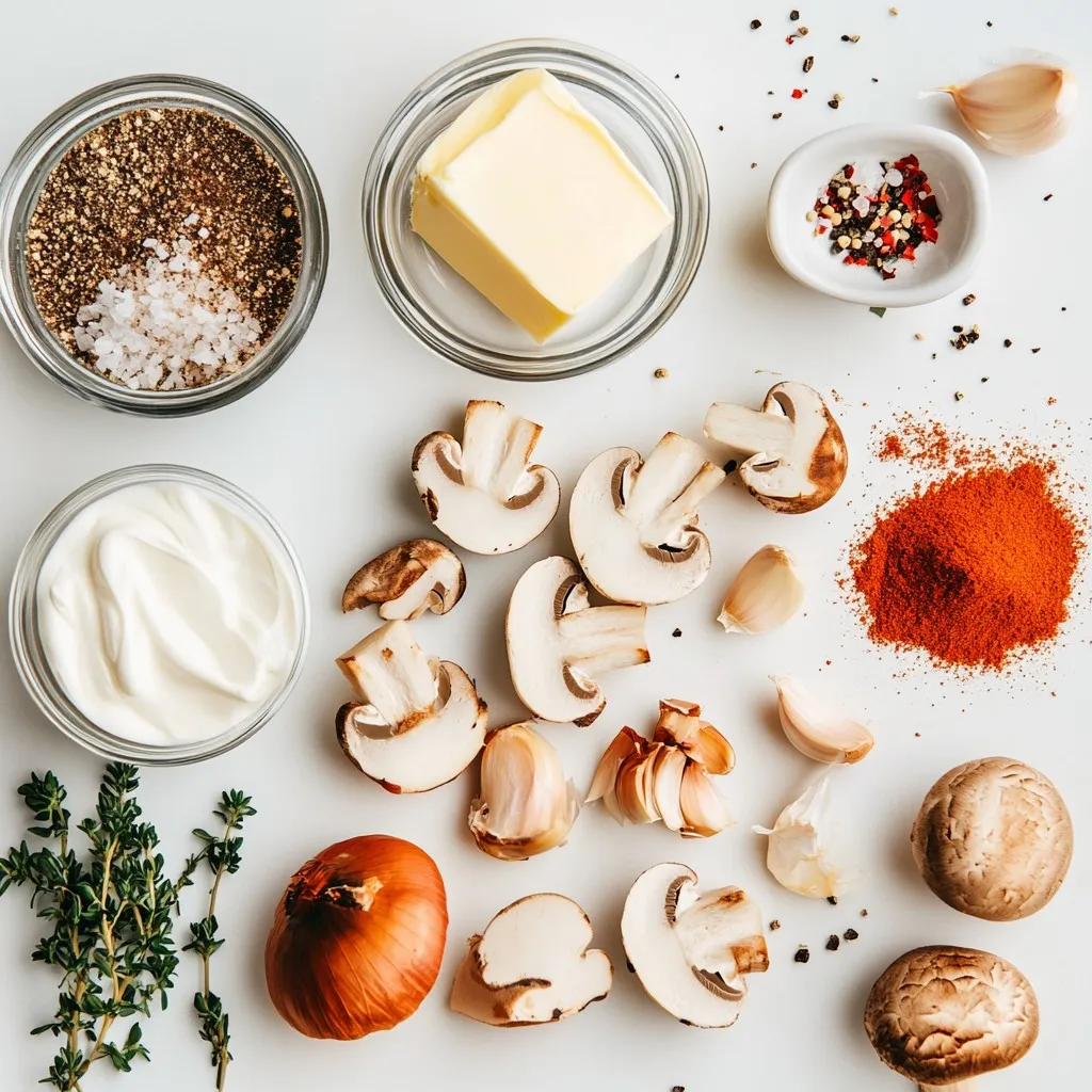 A rich and creamy sauce featuring mushrooms and herbs, perfect for enhancing various dishes.