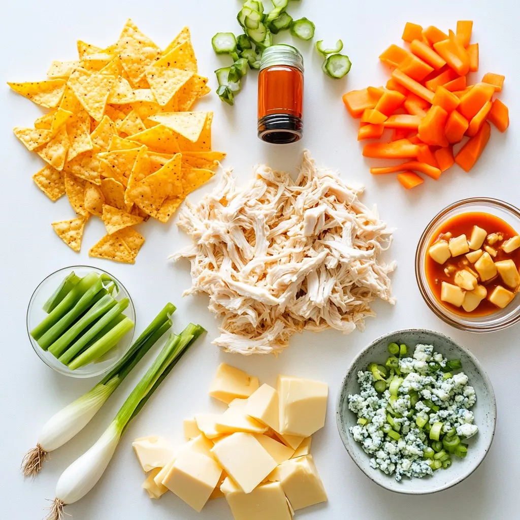To make this tasty dip, you need a few key items. These ingredients work well together to create a creamy and spicy flavor. Here’s what you need: - 2 cups shredded cooked chicken - 1 (8 oz) package cream cheese, softened - 1/2 cup buffalo sauce - 1/2 cup ranch dressing - 1 cup shredded sharp cheddar cheese If you want to kick it up a notch, consider adding these optional ingredients. They enhance the taste and texture of the dip: - 1/2 cup crumbled blue cheese - 1/4 cup diced green onions for garnish This dip is best served hot. Pair it with crispy tortilla chips or fresh veggies. Here are some great options: - Tortilla chips - Fresh vegetable sticks like carrots, celery, or bell peppers {{ingredient_image_2}} To make this dip, start with your crockpot. You need to add the shredded cooked chicken first. Spread it evenly across the bottom of the pot. This step helps the chicken heat well and adds a nice base. Next, take the cream cheese that you softened earlier. Plop it right on top of the chicken. Soft cream cheese mixes better, which is key for a smooth dip. Now, you can pour in the buffalo sauce. Adjust the amount based on how spicy you like it. Once added, give the mixture a good stir. This helps blend the flavors together. Next, pour in the ranch dressing and mix again until everything is well combined. After that, add the shredded cheddar cheese. If you're feeling adventurous, sprinkle in some crumbled blue cheese too. Stir all the ingredients together until they are coated in creamy goodness. Now it’s time to cook! Secure the lid on your crockpot and set it to cook on low heat for 2-3 hours. Remember to stir occasionally. This ensures the dip heats evenly and the cheese melts nicely. Taste the dip to check if it's hot and bubbling. You want the cheese to be fully melted for the best texture. When the dip is ready, it’s time to serve! Ladle the hot dip into a bowl and garnish it with diced green onions on top. This adds a fresh crunch and a pop of color. Serve it hot with crispy tortilla chips or fresh vegetable sticks like carrots, celery, and bell peppers. These will help you scoop up every delicious bite. Enjoy your tasty treat! To get the best texture for your dip, start with softened cream cheese. This helps it mix easily with other ingredients. Make sure to stir well, so everything combines smoothly. You want a creamy and thick dip, not a runny one. If your dip seems too thick after cooking, add a splash of buffalo sauce or ranch dressing. That will help loosen it up without losing flavor. Buffalo sauce gives this dip its kick. You can adjust the heat to fit your taste. Start with half a cup of buffalo sauce. If you like it spicier, add more. If you prefer less heat, use less sauce. You can also mix in some diced jalapeños for extra heat. Remember, you can always add spice, but you can't take it away! Avoid these common mistakes for the best dip. First, don't skip softening the cream cheese. Cold cream cheese clumps up and won't mix well. Second, be careful with the buffalo sauce. Adding too much at once can make it too spicy. Lastly, don’t forget to stir during cooking. This ensures even heating and prevents sticking. Following these tips will help you create a delicious Buffalo chicken dip that everyone loves! Pro Tips Use Rotisserie Chicken: For a time-saving option, use store-bought rotisserie chicken. It's already cooked and adds great flavor to your dip. Customize the Spice Level: Adjust the amount of buffalo sauce based on your preference. Start with less if you're unsure, and add more for a spicier dip. Keep it Warm: If serving at a party, keep the dip warm in the crockpot on the 'warm' setting to ensure it's always ready for dipping. Experiment with Cheeses: While sharp cheddar is classic, try adding pepper jack or gouda for a unique twist on the flavor profile. {{image_4}} You can make this dip lighter by swapping some ingredients. Use Greek yogurt instead of cream cheese. It gives a creamy texture with less fat. You can also use low-fat ranch dressing. This keeps the flavor but reduces calories. Try using shredded rotisserie chicken to save time and effort. If you want a vegetarian version, skip the chicken. Instead, use canned chickpeas or black beans. They add protein and a nice texture. You can also add diced bell peppers or mushrooms for more flavor. Use plant-based cream cheese and ranch dressing to keep it creamy and tasty. To boost the flavor, consider adding some extras. A splash of Worcestershire sauce adds depth. You can mix in chopped jalapeños for extra heat. Toss in some diced tomatoes for freshness. If you like smokiness, try smoked paprika. Each of these options can take your dip to the next level! You can store leftover Crockpot Buffalo Chicken Dip for up to three days. First, let the dip cool to room temperature. Then, place it in an airtight container. This keeps the dip fresh and tasty. Label the container with the date. Always check for any signs of spoilage before eating. To reheat the dip, you have a few choices. The best way is in the microwave. Place the dip in a microwave-safe bowl. Heat it for one minute, then stir. Repeat until it’s hot. You can also use a slow cooker. Add the dip back to the crockpot and heat on low for about 30 minutes. Stir often to prevent burning. You can freeze this dip for longer storage. Use a freezer-safe container and fill it, leaving some space at the top. The dip will expand when frozen. To defrost, move the container to the fridge overnight. Reheat it after it's thawed. Avoid refreezing the dip once it has been thawed. Enjoy this tasty treat later without losing flavor! Yes, you can use frozen chicken. Just make sure to cook it fully before adding it to the crockpot. This may take a bit longer. Cook it on low for about 4-5 hours instead of 2-3 hours. Check the chicken to ensure it is fully cooked and tender. Shred the chicken before mixing it with the other ingredients. If you want to swap ranch d