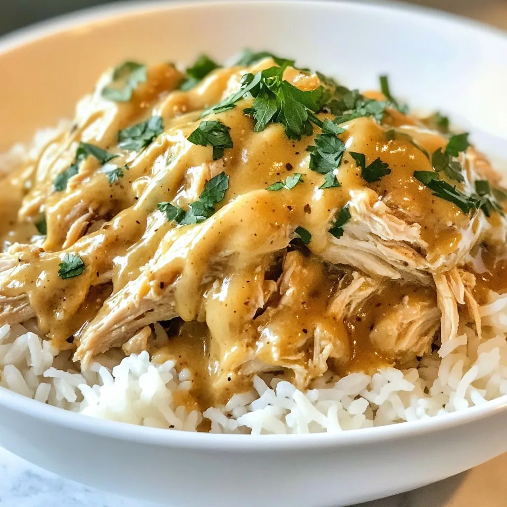 To make a creamy gravy, use the right amount of cream of chicken soup. This is key for richness. If you want a thicker sauce, you can add a bit of cornstarch mixed with water. Stir it in at the end of cooking. Let it cook for a little longer to thicken up. If the gravy is too thick, add some chicken broth slowly until it reaches your desired consistency.