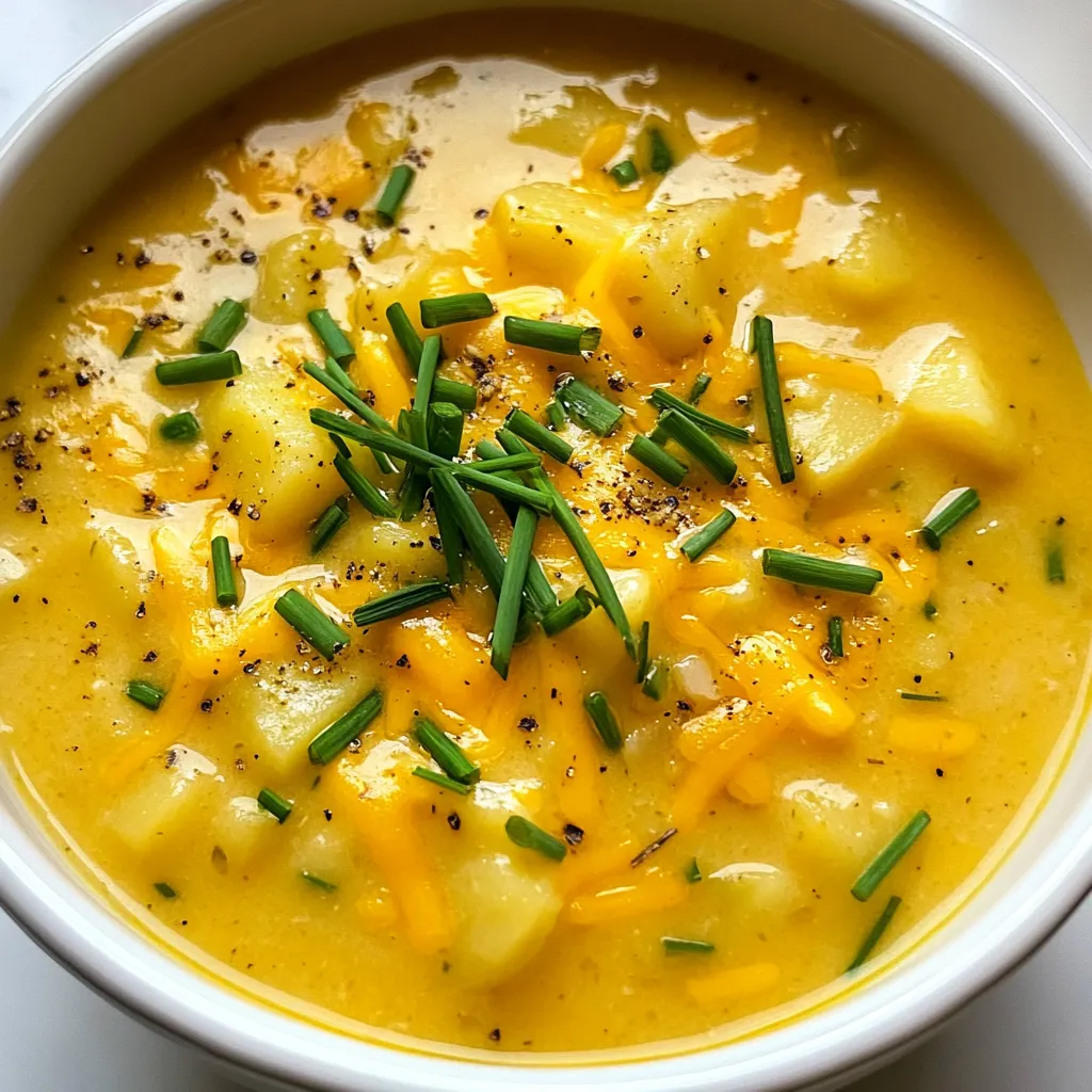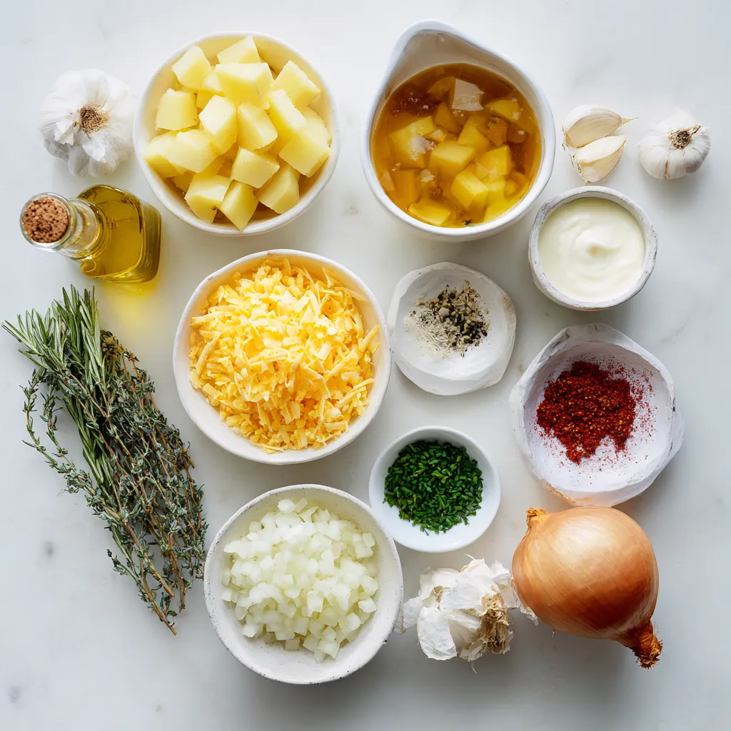 Each ingredient plays a key role in creating rich flavors. The russet potatoes give the soup a creamy base. Sharp cheddar adds depth and a great cheesy flavor. Fresh garlic and herbs boost the taste, while heavy cream brings smoothness.