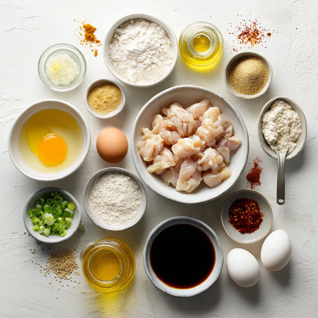 To start, I use boneless, skinless chicken thighs. This cut is juicy and tender. I cut them into bite-sized pieces for easy frying. For the marinade, I mix salt, ginger powder, and garlic powder. These spices add great flavor. Marinate the chicken for at least 15 minutes. It helps the spices soak in and makes the chicken tasty.