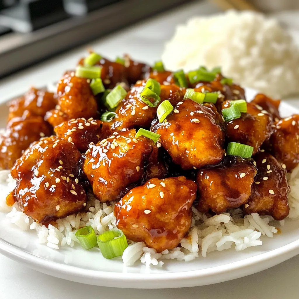 Presentation is key for any dish. Serve your General Tso’s Chicken on a bed of fluffy steamed rice or with vibrant broccoli on the side. Arrange the chicken pieces in a circular pattern on the plate. Drizzle some remaining sauce over the top for a glossy finish. For a final touch, sprinkle sesame seeds and finely chopped green onions. This elevates the dish, making it look as good as it tastes. Enjoy the compliments that follow!