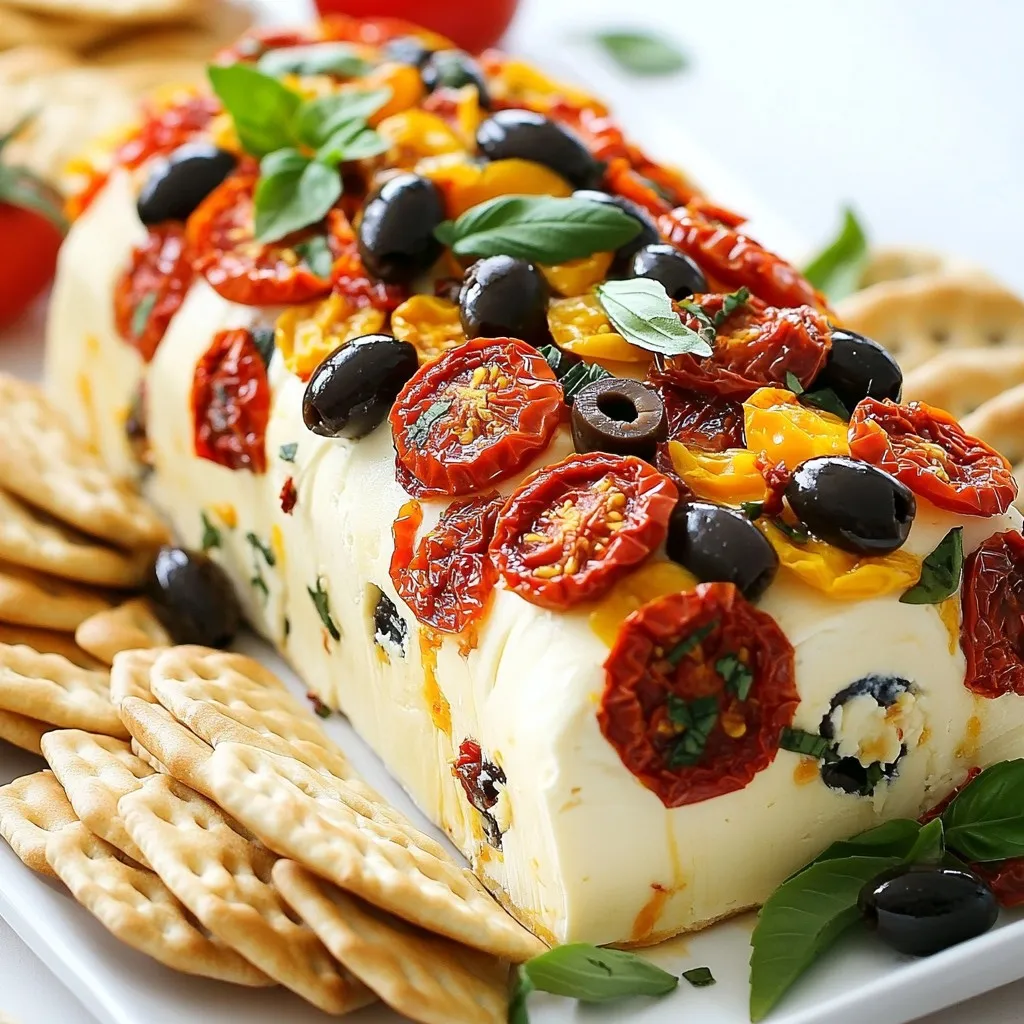 Need a quick way to prepare? Make the cheese log a day ahead. Chilling overnight boosts the flavor and texture. You can also prep the ingredients in advance. Chop the sun-dried tomatoes, olives, and peppers a day before. Store them in the fridge to save time. This way, you can whip up this tasty treat with ease when guests arrive.