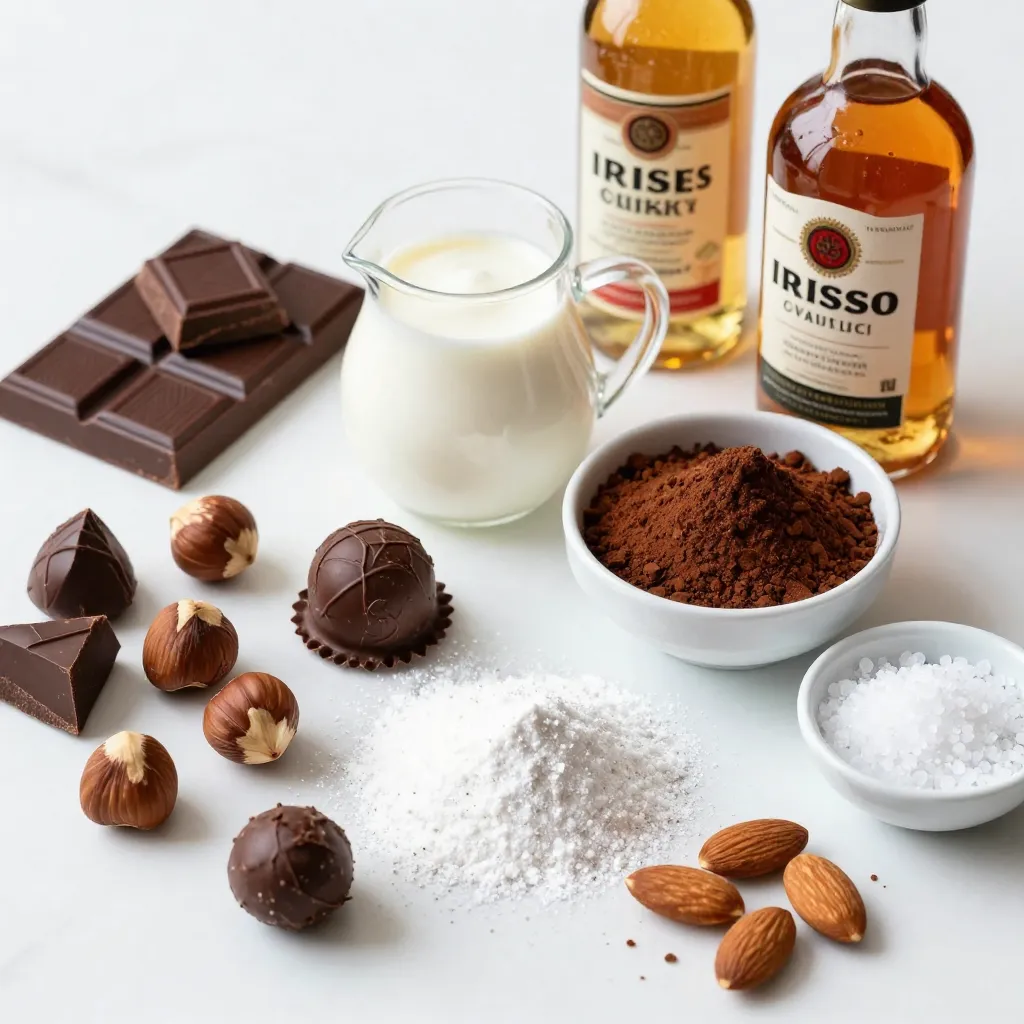 - 8 oz (225g) dark chocolate, finely chopped - 1/2 cup heavy cream - 2 tablespoons Irish whiskey - 1/4 cup unsweetened cocoa powder - 1/2 cup powdered sugar - 1/4 cup finely chopped nuts (hazelnuts or almonds) - A pinch of sea salt for garnish If you want a non-alcoholic option, use whiskey flavoring instead of Irish whiskey. You can also pick different kinds of chocolate, like semi-sweet or milk chocolate, if you prefer. For dark chocolate, I suggest brands like Ghirardelli or Valrhona for quality. When it comes to Irish whiskey, Jameson and Bushmills are popular choices that add great flavor to your truffles. {{ingredient_image_2}} - Melting the chocolate Start by chopping your dark chocolate into small pieces. This helps it melt evenly. Place the chopped chocolate in a heatproof bowl. - Heating the cream Pour the heavy cream into a small saucepan. Heat on medium heat until it lightly simmers. Do not let it boil. Once it simmers, take it off the heat. - Mixing chocolate and cream Pour the hot cream over the chopped chocolate. Let it sit for about 2 minutes. This allows the chocolate to soften. After two minutes, stir the mixture gently. Keep stirring until it becomes smooth. - Blending in the whiskey Add in your Irish whiskey or the non-alcoholic flavoring. Mix it well until combined with the chocolate. - Techniques for rolling Cover the bowl with plastic wrap. Place it in the fridge for 1 to 2 hours. This will help the mixture firm up. Once firm, use a small scoop or your hands to form balls. Aim for about 1 inch in size. - Coating options Roll each ball in your choice of coating. You can use cocoa powder, powdered sugar, or finely chopped nuts. This adds great flavor and texture. Arrange them on a parchment-lined sheet. Before they set, sprinkle a tiny pinch of sea salt on top. This enhances the taste. Return the truffles to the fridge for another 30 minutes to firm up. To achieve a smooth texture, always chop your chocolate finely. This helps it melt evenly. When you heat the cream, bring it to a gentle simmer. This makes the cream hot enough without boiling. Pour the hot cream over the chocolate and let it sit. This helps the chocolate soften. Stir gently until the mixture is silky and smooth. For flavor enhancement, choose a quality Irish whiskey. A good whiskey adds depth to the truffles. If you prefer a non-alcoholic option, use whiskey flavoring instead. This still gives a nice taste without alcohol. You can also mix in a tiny pinch of sea salt. This adds a nice contrast to the sweetness. One common mistake is overheating the cream. If you boil the cream, it can change the texture. This makes it harder for the chocolate to melt properly. Always watch the cream closely as it heats. Another mistake is not chilling the mixture enough. If the ganache is too soft, it won't hold its shape. Be sure to chill it for 1-2 hours until firm. This makes rolling the truffles much easier. For presentation, serve your truffles in a decorative box. You can also use a slate platter for a rustic look. Garnish with extra chopped nuts or chocolate shavings for added style. For pairing, enjoy these truffles with a cup of coffee. The flavors work well together. You can also pair them with a glass of Irish whiskey. This enhances the whiskey notes in the truffles. Pro Tips Use High-Quality Chocolate: The flavor of your truffles will largely depend on the quality of chocolate you choose. Opt for a premium dark chocolate with at least 70% cocoa for rich, indulgent truffles. Chill for Perfect Texture: Ensure you chill the ganache until it’s firm enough to scoop. This step is crucial for achieving the right texture and ensuring the truffles hold their shape when rolled. Experiment with Coatings: While cocoa powder and powdered sugar are classic options, feel free to experiment with other coatings like crushed cookies, coconut flakes, or even sprinkles for a fun twist. Make Ahead: These truffles can be made ahead of time. Just store them in an airtight container in the refrigerator for up to a week, or freeze them for longer storage. Just remember to let them thaw in the fridge before serving. {{image_4}} You can change the taste of your truffles easily. Try using different spirits like rum or bourbon instead of Irish whiskey. This gives a new twist to your truffles. You can also add flavorings like espresso for a coffee kick. A bit of orange zest can add a bright, fresh taste. Experiment with these ideas to find your favorite mix! While cocoa powder is common, you have many choices for coatings. You can roll your truffles in powdered sugar for a sweet touch. Try finely chopped nuts for crunch, like almonds or hazelnuts. Another fun option is a drizzle of melted chocolate on top. This adds a nice look and extra chocolatey flavor. If you want vegan options, you can swap heavy cream with coconut cream. Use a dark chocolate that has no milk. For gluten-free truffles, make sure the chocolate and other ingredients are certified gluten-free. These changes let everyone enjoy these treats without worries! To keep your Irish whiskey chocolate truffles fresh, store them in an airtight container. This helps prevent them from drying out. Place parchment paper between layers to avoid sticking. The best storage temperature is in the fridge, around 32°F to 36°F (0°C to 2°C). This cool environment maintains the truffles' texture and taste. These truffles can last up to two weeks if stored properly. After this time, they may lose their flavor and texture. Look for signs of spoilage, like a dull appearance or an off smell. If the truffles feel too soft or sticky, they may also be past their prime. If you have leftover chocolate ganache, you can make more truffles! Simply warm the ganache slightly, then scoop and roll. Alternatively, use it as a filling in cupcakes or layer it in desserts. You can also incorporate leftover nuts into trail mixes or other treats for extra crunch. To make Irish whiskey chocolate truffles, s
