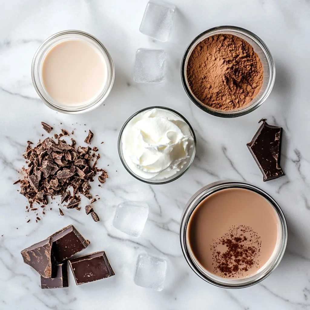 Start by gathering your ingredients. You need chocolate milk, Irish cream flavored coffee creamer, chocolate syrup, and instant coffee granules. This mix gives the drink its rich flavor.