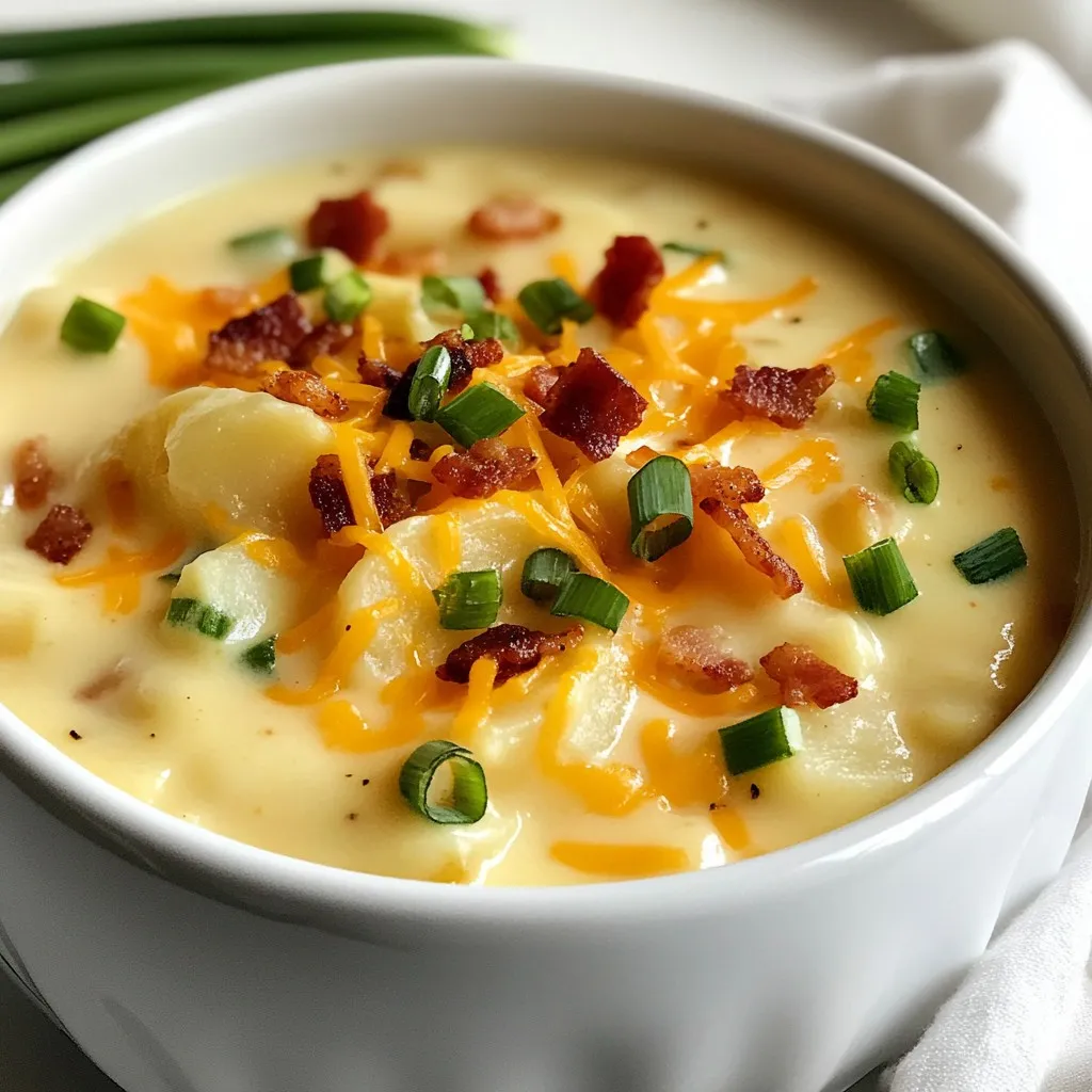 - Garnish Generously: Enhance your soup’s flavor and presentation by garnishing with additional cheese, crispy bacon, and fresh green onions.