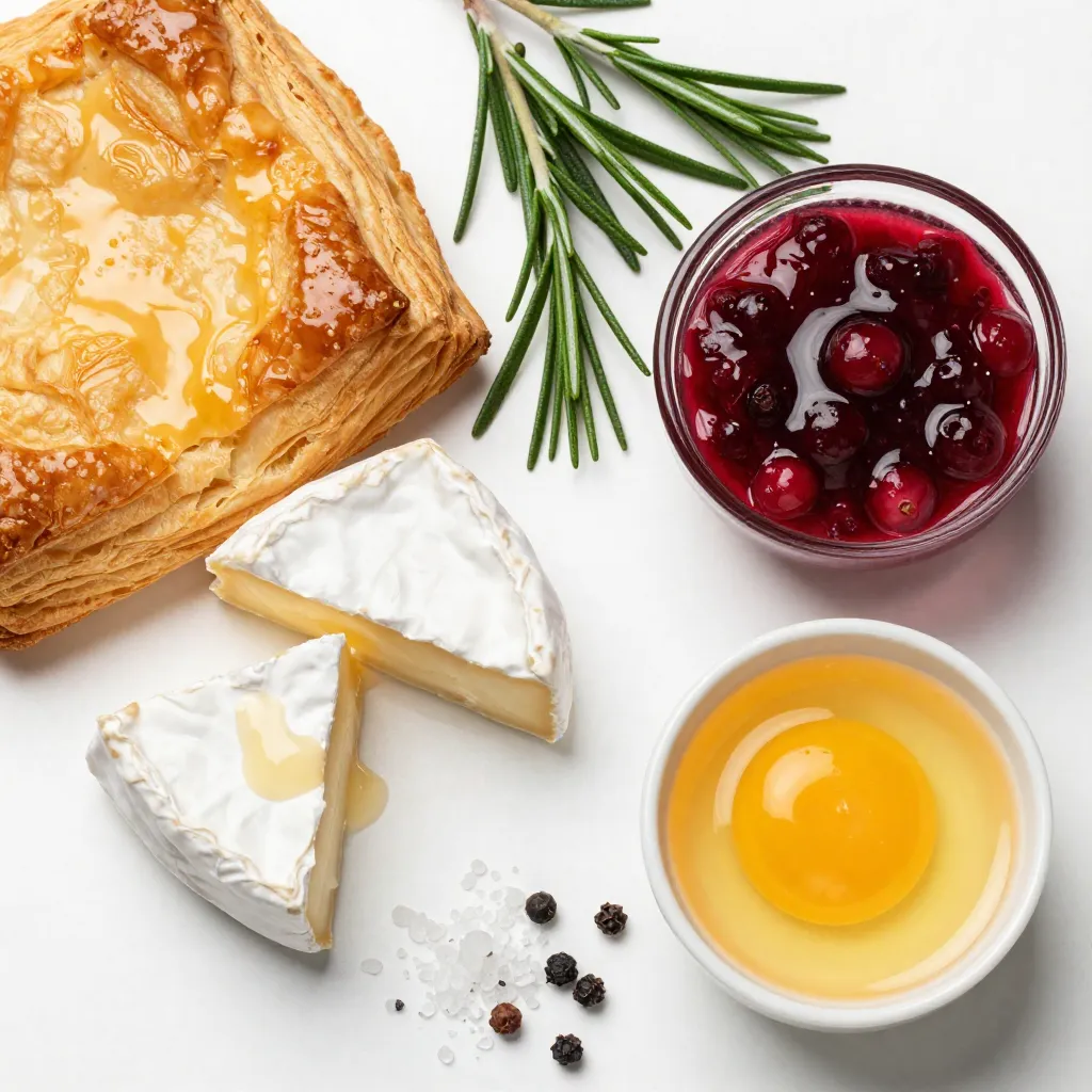 Delicious bite-sized pastries filled with creamy Brie cheese and tart cranberry sauce, perfect for appetizers.