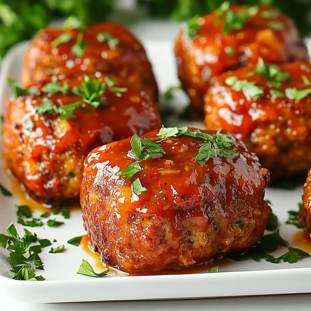 After baking, take the meatloaves out of the oven. Let them rest for about 5 minutes. This helps keep them moist. Before serving, sprinkle fresh parsley on top. This adds color and a fresh taste. Enjoy your mini glazed chicken meatloaves!