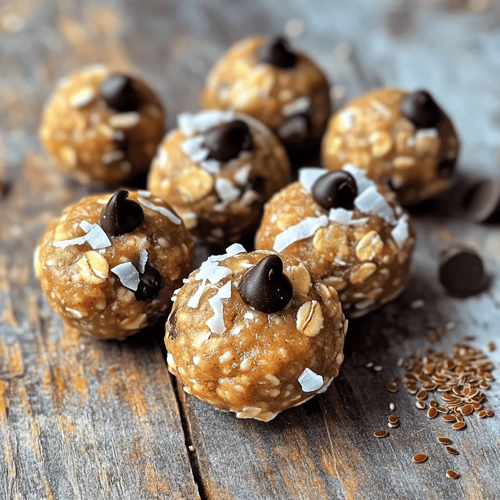 These ingredients create a tasty snack that fuels your day. Each one plays a key role. The oats provide fiber, while peanut butter adds protein. Honey or maple syrup sweetens the mix. Ground flaxseed boosts the nutrients, and chocolate chips give a treat. Coconut adds flavor and texture, making each bite fun. The vanilla extract brings everything together, while a pinch of sea salt enhances the taste.