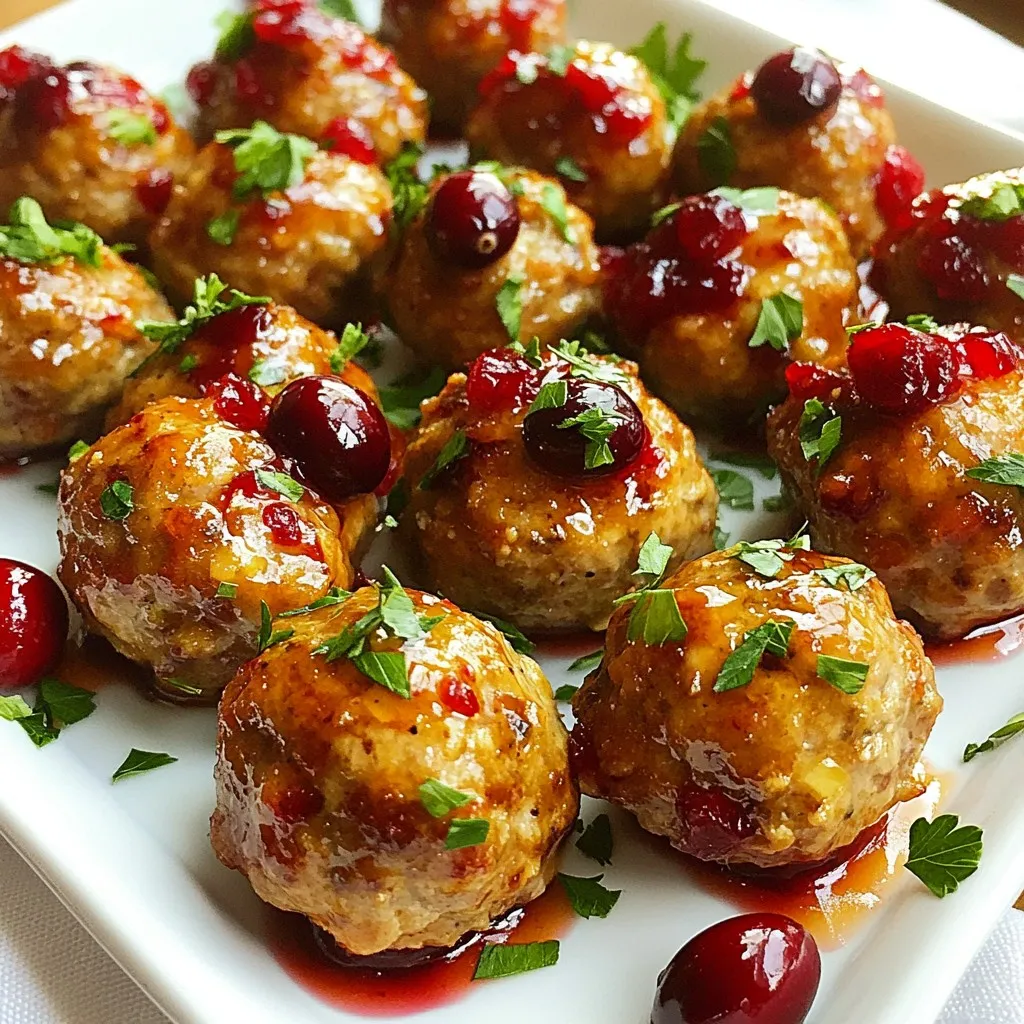 Serve the meatballs warm. For a festive touch, garnish with fresh cranberries. Arrange the meatballs on a large platter and drizzle any extra sauce over the top. Sprinkle with chopped parsley for a bright look.