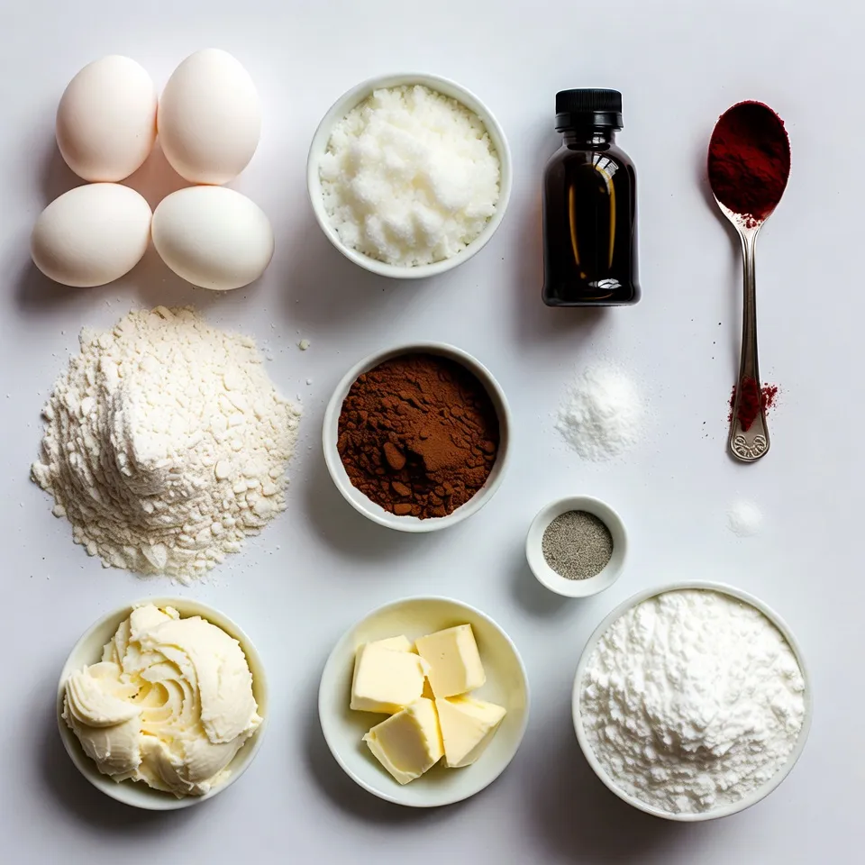 List of Ingredients for Red Velvet Cake Roll