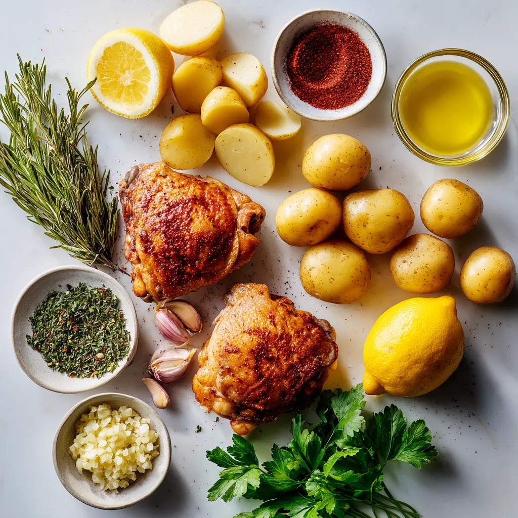 When making roasted chicken thighs and potatoes, the right ingredients are key. The chicken thighs should have skin and bones. This keeps the meat juicy and full of flavor. Baby potatoes add a nice texture and taste. They roast well and soak up the seasoning.