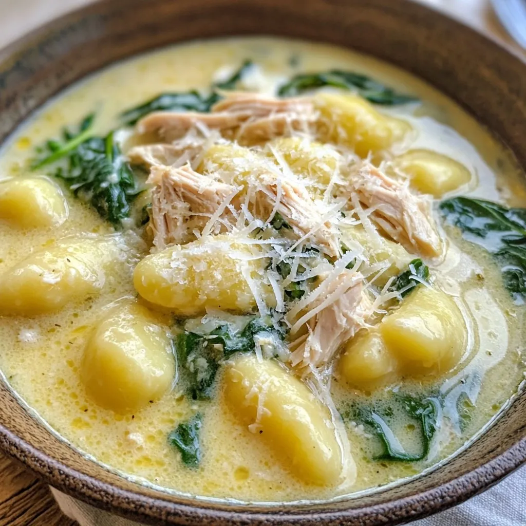 A comforting and creamy soup featuring chicken, gnocchi, and fresh vegetables.