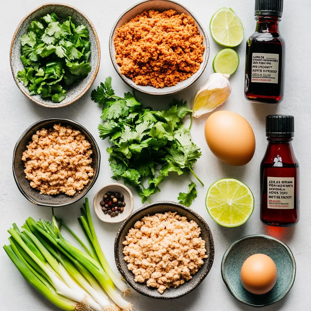 In this recipe, ground chicken acts as the main protein. It brings a light flavor that pairs well with fresh herbs and spices. I love using fresh cilantro and green onions for brightness. Garlic and ginger add depth, while Thai red curry paste gives the meatballs their signature kick. Fish sauce and soy sauce enhance the umami profile. An egg binds the mixture, keeping it moist. The lime juice adds a nice zing that cuts through the richness.